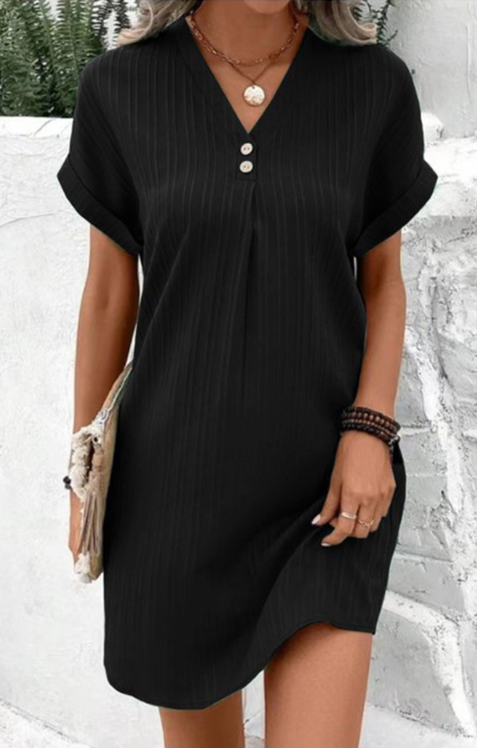 Indulge in this women's V-neck sundress, meticulously crafted to enhance your style while providing day-long comfort. Its universally flattering design bestows a flattering silhouette upon all body types, ensuring you radiate confidence.