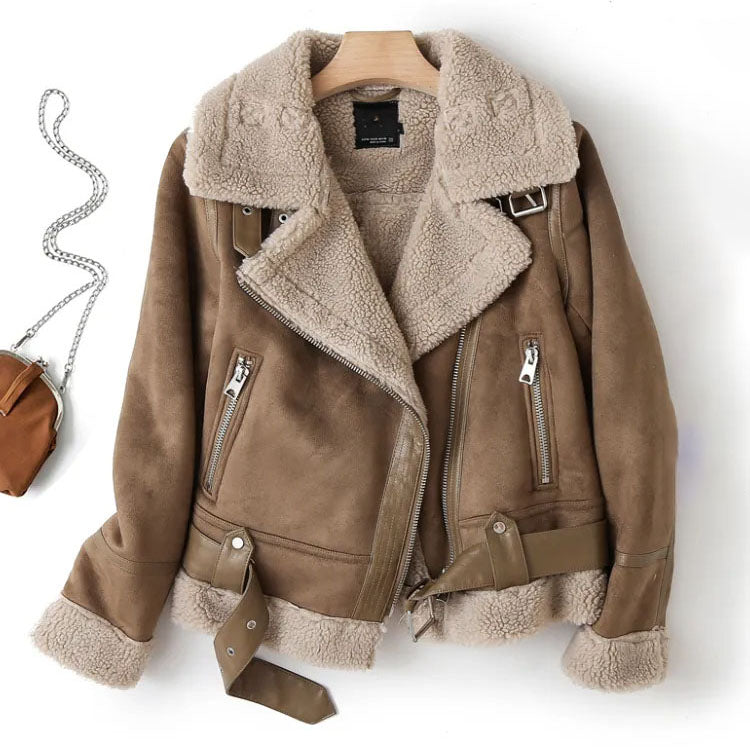 Având un rever de blană integrat și mâneci lungi, această jachetă combină designul șic cu căldura confortabilă, asigurându-vă că rămâneți modern și confortabil pe tot parcursul sezonului.